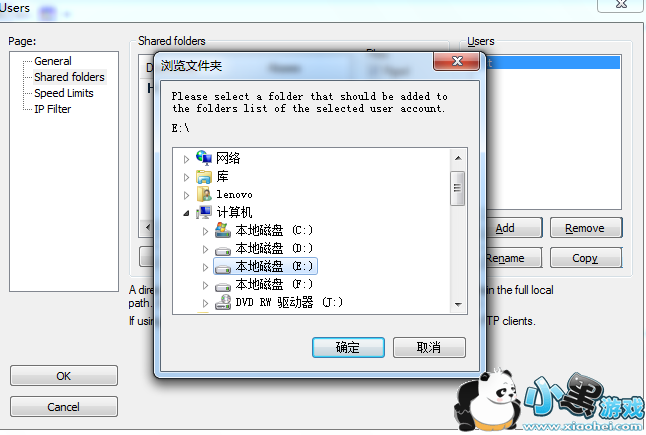 设置好主目录之后,再点击“Add”按钮把其余的目录依次设置进来就可以了。不过这里得注意,如果仅仅把别的目录添加进去,那么你用客户端连接之后,会发现除了主目录和它的子目录之外,别的目录都看不见。这是怎么回事?这里要说明一个概念——虚拟路径。所谓虚拟路径,就是在客户端看到的目录结构。由于一个用户只能有一个主目录,别的目录如果不映射成虚拟目录的话,客户端将看不到它。所以只有把除了主目录之外的其它目录,虚拟成主目录的子目录,这样在客户端才能看到。