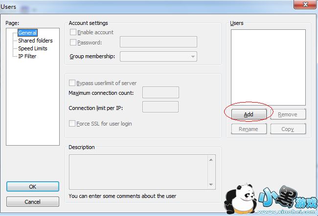 第2步 设置用户(Users)。点击主界面第四个按钮或者由“Edit”——“Users”菜单进入。