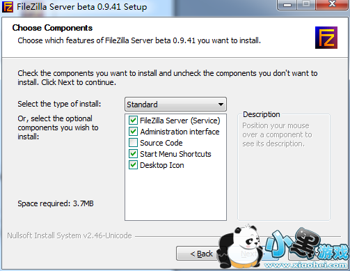 第2步 接着他会问你要安装哪些元件,安装方式:默认的标准,按一下〔Next〕继续下一步。