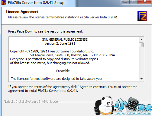 第1步 在「FileZilla_Server-0_9_24.exe」安装档上按两下滑数左键,执行安装程序,接着再按一下〔I Agree〕按钮,开始安装。