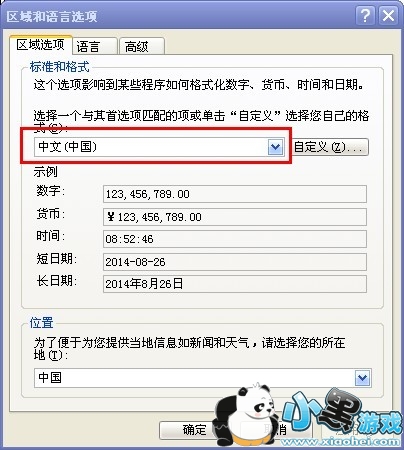 4、在区域和语言选项界面,将格式设置为“中文(中国)”,如下图: