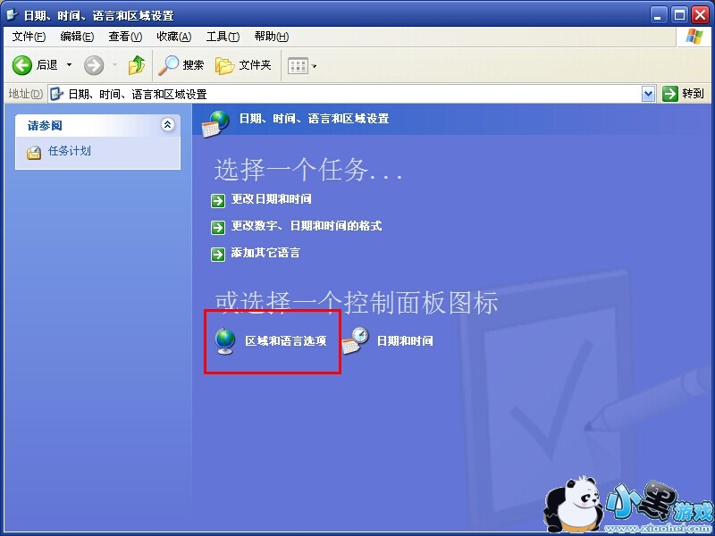 3、在日期、时间、语言和地域设置界面,点击“区域和语言选项”,如下图:
