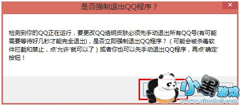 3、在使用“透明皮肤修改器”之前,我们需要完成关闭退出QQ程序。当然,在利用“透明皮肤修改器”进行修改操作之前,该程序也会给出如图所示的“完全退出QQ”的提示。点击“确定”即可强制退出QQ程序。