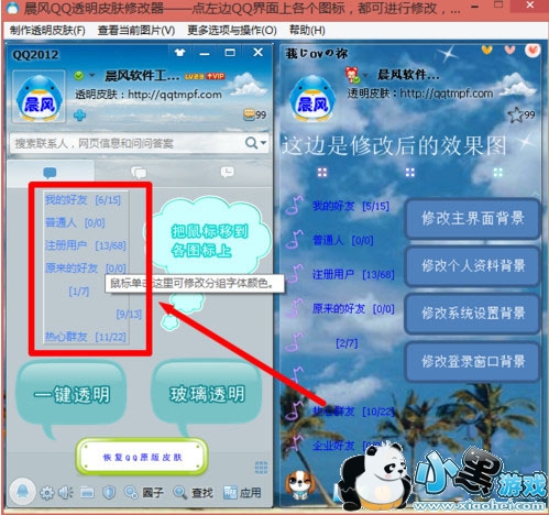 1、设置QQ分组字体颜色所使用的工具是“晨风透明皮肤修改器”