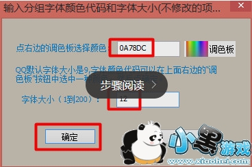 5、然后在打开的“颜色选择器”窗口中,通过点击“调色板”按钮来选择一种自己喜欢的分组字体颜色,同时设置合适的分组字体大小,点击“确定”完成设置。