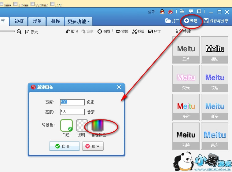 1、首先我们用打开美图秀秀,点击“新建“一张画布,选择自己喜欢的颜色