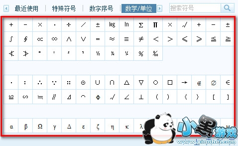 3、择“数学/单位”,选择你想要的上标