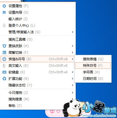 2、打开你的搜狗输入法,右击“表情&符号”特殊符号中的特殊符号