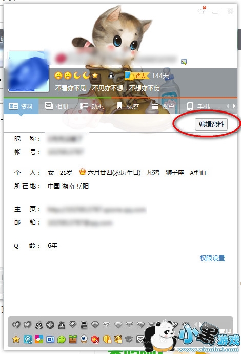 2、进入你个人资料,然后我们点击编辑资料