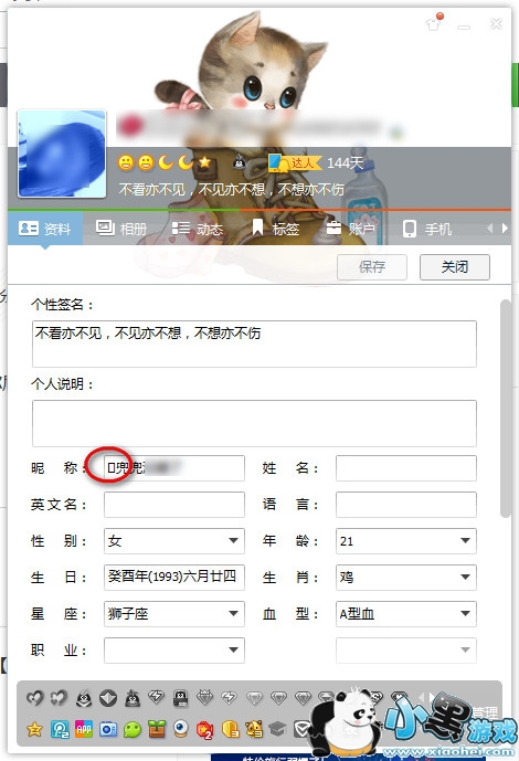 3、在你的昵称中输入□,点击”保存“就可以了,