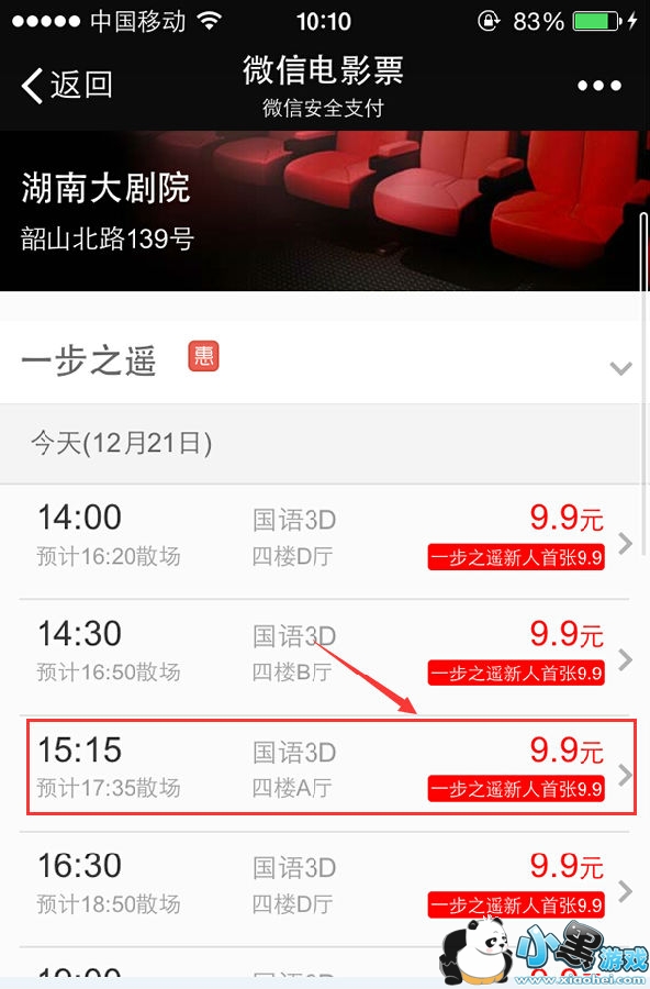 6.选完电影院后再选择电影播出时间。