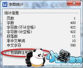 3、点击后会弹出“字数统计”的对话框,如果你要统计脚注和尾注的话就可以勾选“包括脚注和尾注”