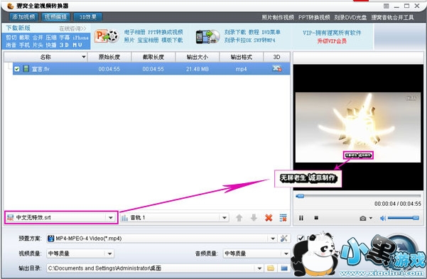 3、 添加成功后,在右边的预览窗口播放该视频时,就能看到添加的相应字幕了。