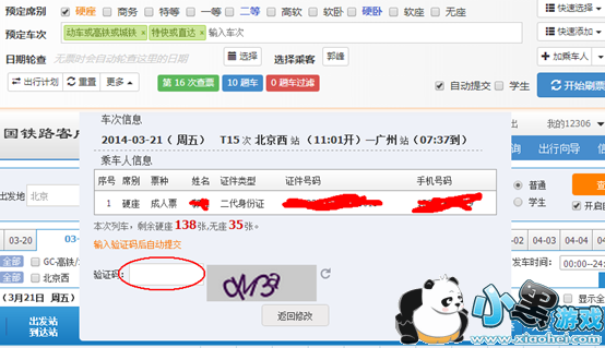 6、在这里选择 乘车人, 座位等, 点击按钮 开始刷票