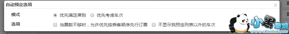 4) 优先满足席别:当出现多个可能的车次和席别时,按照席别先进行选择,即优先满足席别的偏好;优先考虑车次:当出现多个可能的车次和席别时,按照车次的顺序优先选择,即优先满足对车次的偏好。