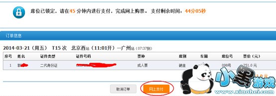 8、等待订单提交完成后,进行网上付款票就是你的了