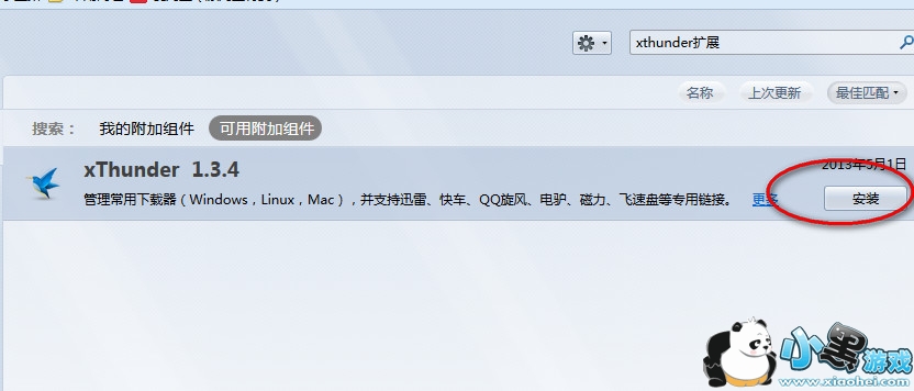 2、然后搜所xthunder这个组件点击“安装”。安装完成后重启浏览器。