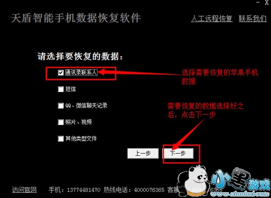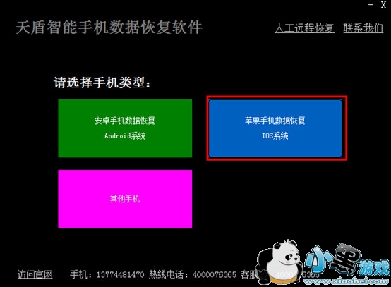 第三步:打开软件,选择手机类型,用户直接点击“苹果手机数据恢复iOS系统”按钮。