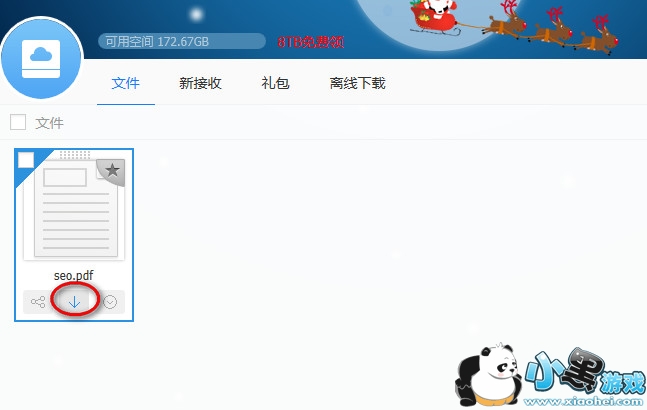 2、登录进入后可以看到我们上传的文件,将鼠标移动到文件出,就会出现下图这样的框框,点击向下的箭头。
