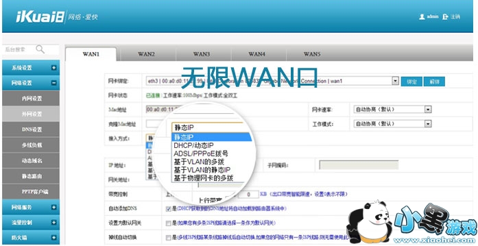 爱快不限制wan口数量,也支持vlan多拨,和物理网卡多拨。
