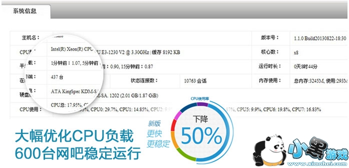 针对CPU负载再次进行优化,使带机性能提升50%以上。