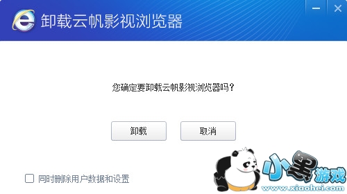 3、建议大家点上左下角的“同时删除用户数据和设置”,然后点击卸载,这样就可以彻底删除云帆影视浏览器