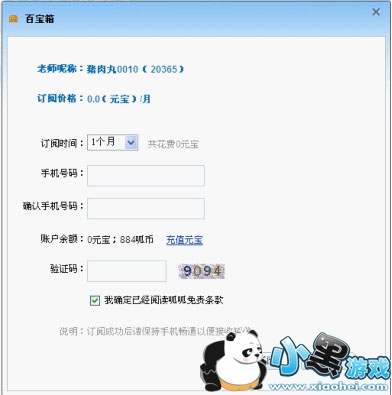 其次,点击订阅,弹出订阅页面,填写正确资料,点击订阅即可成功订阅该老师的宝物了。该老师的宝物信息会根据老师设置的时间定时发送至您手机、房间或网站。