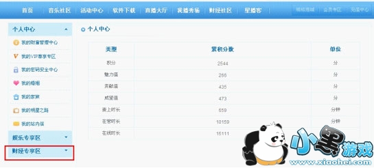 1)点击个人中心-点击财经专区