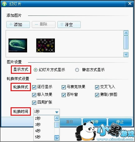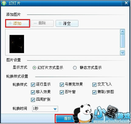 b. 点击添加您所要播放的图片,点播放即可。如下图所示: