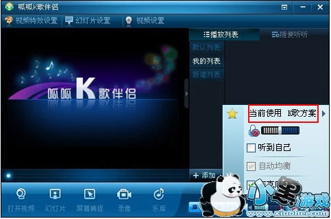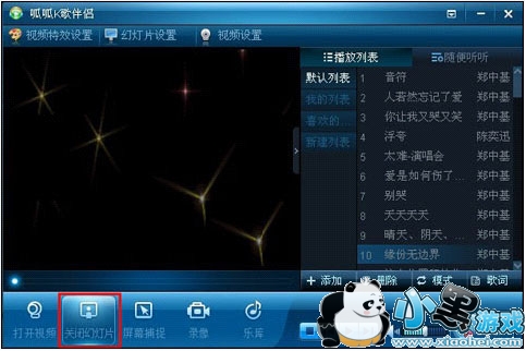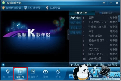 2、如点击“幻灯片”可进入幻灯片设置里面进行调试,下图:a. 首先打开K歌伴侣,点击“幻灯片”。如下图所示: