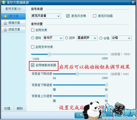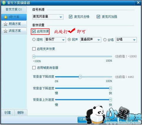 e. 在“麦克风”中,您可以选择:启用喊麦消音器。在您需要的效果前打上勾即可。下图: