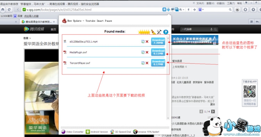 4、找到自己想要下载的视屏,点击地址框内的向下这个图标,会弹出一个框