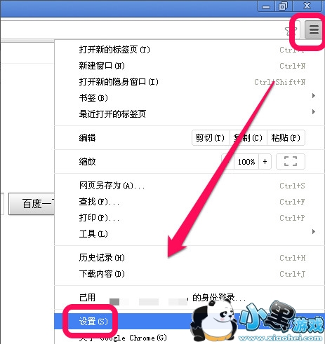 1、首先,我们打开谷歌浏览,点击右上角的菜单图标,弹出菜单,点击设置