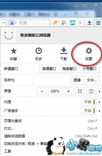 1、打开你的傲游浏览器,然后点击右上角的“设置”按钮