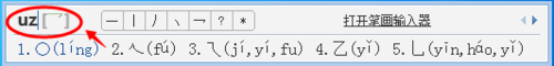7、如果不知道那些特殊符号的拼音,可以直接打“uz”,可以打出很多特殊符号了。并且后面还会跟着有这个符号的拼音。如下图所示。