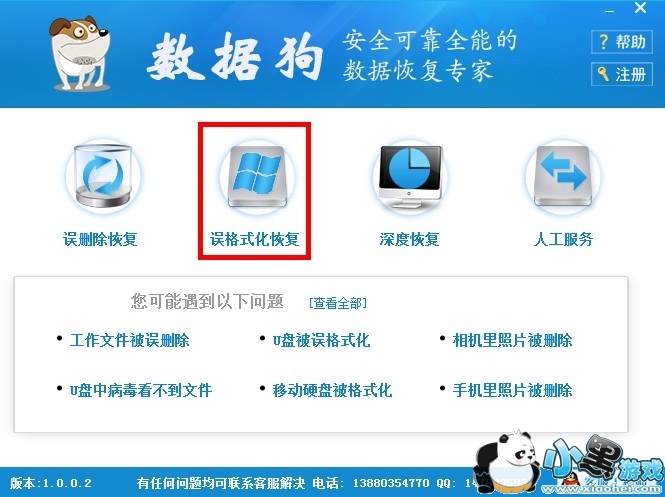 第一步:打开您电脑中的数据狗数据恢复软件,进入软件主界面,选择“误格式化恢复”模式,如下图所示