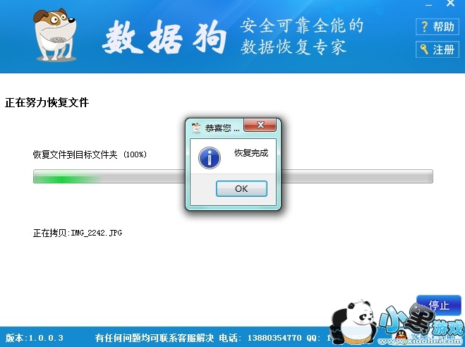 第五步:等待数据恢复完成,完成后点击OK按钮,如下图所示。