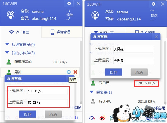 用160WiFi开启WiFi热点,不管是“隔壁蹭网的”还是心仪的“男神”,手机上网速度都非常快。但如果想限制“隔壁蹭网的”的网络速度,该如何操作呢?