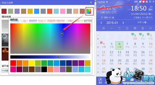 你以为人生日历这版更新就只优化截图吗?那你就错了。下面小编再带你看看人生日历对皮肤的改变,这版日历皮肤可选择的颜色是能通过调色板进行选择的,这个功能可大大提高了那些对颜色有着极高要求同学们的需求。