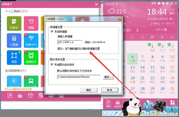 可能有同学认为每次要截图时还要先点开日历客户端比较麻烦,但是人生日历的截屏是可以设置快捷键的。在工具条中的设置里面可以自由设置。