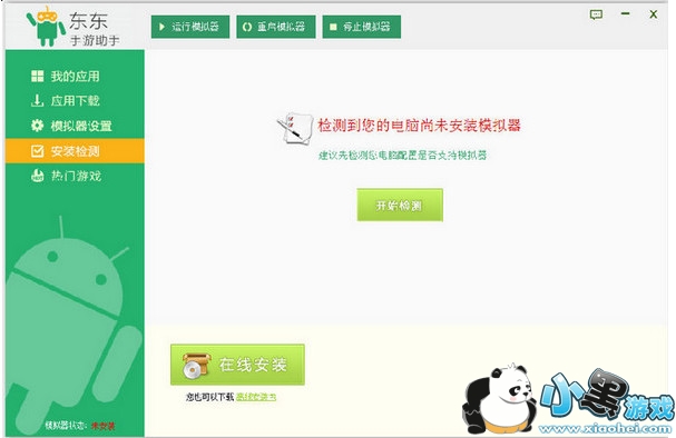 准备:先安装一个东东手游助手,安装以后打开,点击开始检测,这时候如果你的电脑没有安装模拟器的话会自动给你装上,你等待即可,在安装的同时你还要下载一个andorid版的微信(小编写起来可以让大家觉得麻烦哦,但操作起来很简单哦)