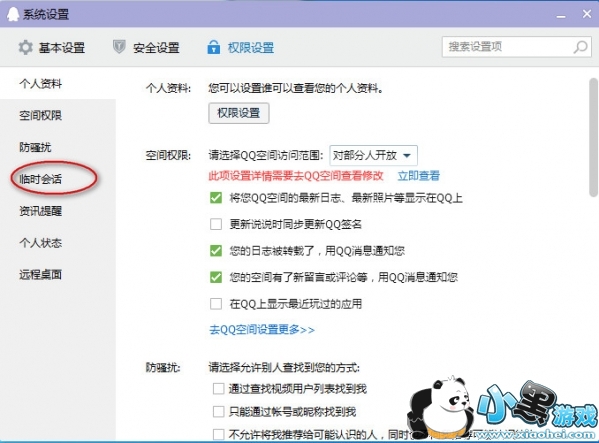4、点击“临时对话”后的对勾,“不接受临时对话”这样只有好友列表中的好友给你发信息才能收到,其他的信息自动屏蔽
