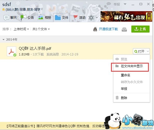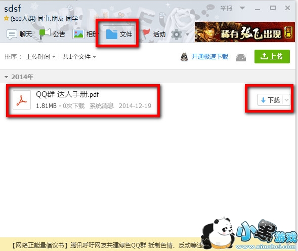 第三步:在群文件中,点击右边的【下载】按钮即可在线下载群文件。下载完成后会显示【查看】点击【查看】即可使用。