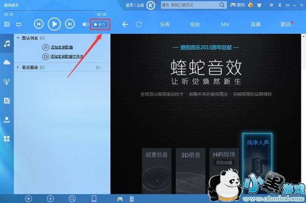 2.安装完成后打开酷狗音乐,在喇叭图标右边找到音效。