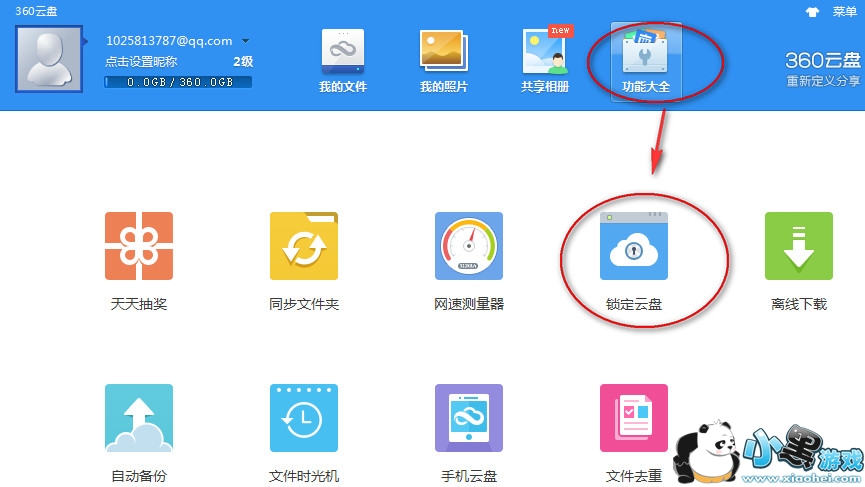 1、锁定360云盘主要是当自己离开操作时,可以锁定360云盘,以防信息泄露,具体操作是,首先登陆360云盘,然后点击功能大全。