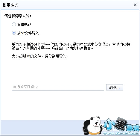 4、在弹出的对话框中选择“从txt文件中导入”然后浏览找到刚刚保存的词库文件,点击打开-》开始导入,然后就会弹出一个对话框,提示导入词库情况