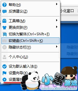 2、在桌面右下角右键点击百度输入法,在弹出的菜单中点击“设置属性”