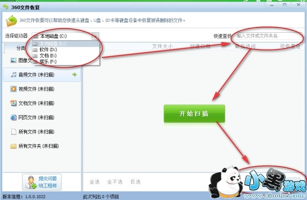3、在加载之后我打开它,然后点击你要恢复文件的所在盘,或者直接输入文件或者文件夹名,然后点击“开始扫描”