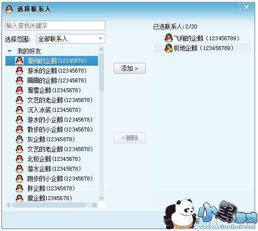 选择联系人:您需要先在【选择联系人】窗口左侧选择您想要邀请加入语音讨论组的QQ好友或群友