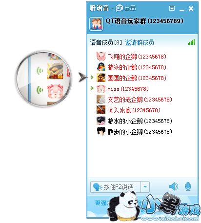 群友语音畅谈开启群语音后您将看到如下图所示的弹出语音会话窗口,对着麦克风发言就可以与群内正在试用群语音功能的群友们一块语音聊天了。